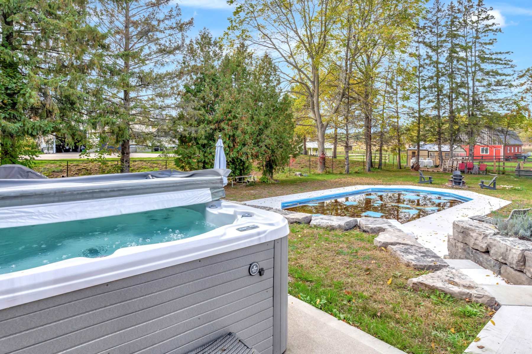 A rare opportunity to own a beautifully updated bungalow on a full acre of land in the desirable community of Puslinch. Just minutes from Cambridge, Guelph, and the 401, this property offers the peace of country living with easy access to city conveniences. This home features 1,763 sq. ft. of living space on the main floor and an additional 888 sq. ft. of finished space in the basement. A welcoming foyer off the large covered porch leads into the updated dining room, kitchen, and living room. These spaces are thoughtfully laid out and distinguished by a stone fireplace that provides additional heat during the cooler months. The dining room sits beside the kitchen, overlooking the mature trees out front. With plenty of prep and storage space, the kitchen layout is ideal for cooking enthusiasts and busy families alike. Just off the dining room, the living room features French doors that open to a private backyard with an inground pool, hot tub, and greenspace perfect for campfires, veggie gardens, or flower beds. The finished lower level includes a large recreation area and a fourth room ideal for an office or hobby space. With main-floor laundry, a powder room, and an attached two-car garage, this home combines functionality and charm in an ideal rural setting, perfect for those seeking more land, less noise, and a life surrounded by natural beauty. |